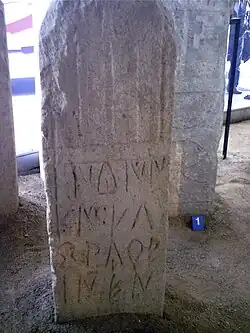 La estela de Can Peixau tiene una inscripción de difícil lectura en el primer signo por su estado de conservación. Hay consenso en la lectura![]()