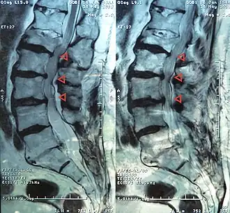 El término estenosis medular lumbar incluye la estenosis del canal espinal, el receso lateral y los agujeros o forámenes intervertebrales siendo más común en los niveles L2 a L5 y constituye una de las causas más comunes de dolor en la espalda y en las extremidades inferiores por opresión de la médula y de las raíces nerviosas espinales.[2]