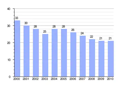 Población de derecho (2000-2010) según los censos de población del INE a 1 de enero de cada año.[7] |