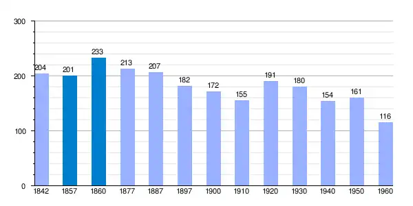 | Gráfica de evolución demográfica de Esteras de Lubia[5] entre 1842 y 1960 |