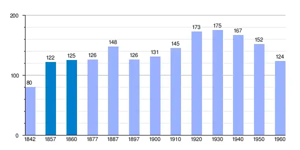 Gráfica de evolución demográfica de Esteras de Medina[5]​ entre 1842 y 1960