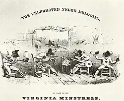 Los espectáculos minstrel se convirtieron en una forma popular de teatro durante el siglo XIX, que retrataba a los afroamericanos de forma estereotipada y a menudo despectiva, siendo algunas de las más comunes que son ignorantes, vagos, bufones, supersticiosos, alegres y musicales.[1] Uno de los estilos más populares del minstrel era el blackface, en el que los intérpretes blancos quemaban corcho y más tarde maquillaje teatral o se aplicaban betún de zapatos en la piel con el objetivo de ennegrecerla y exagerar los labios, a menudo vistiendo pelucas de lana, guantes, fracs o ropas harapientas para dar una representación teatral burlona y racialmente prejuiciosa de los afroamericanos.[14] Esta actuación ayudó a introducir el uso de insultos raciales contra los afroamericanos, incluyendo darky y coon.[15]