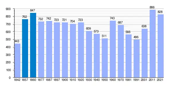 | Gráfica de evolución demográfica de Esterri d'Àneu[7] entre 1842 y 2021 |