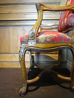 - El escritorio (bureau) se genéraliza; habitualmente en maderas oscuras (noirci), el borde de la superficie de trabajo en bronce y recubierta de cuero fino, las patas curvadas y decorado con bronce (le plateau droit cerné de bronze recouvert d'un maroquin, pieds galbés et décor en bronze).