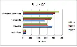 - ↑ Esta proporción varía ampliamente entre los diversos países, por ejemplo, en España (país más cálido y soleado que la media de la UE) se reduce al 25 %