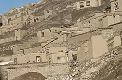 Las casas de foso construidas por los agricultores Hohokam entre los años 100 y 900 d. C., en lo que hoy es el suroeste de EE. UU., eran estructuras con bermas, parcialmente empotradas en laderas orientadas al sur. Su exitoso diseño se utilizó durante cientos de años.[54] En Matmata (Túnez), la mayoría de las casas antiguas estaban construidas a 12 metros (39 pies) por debajo del nivel del suelo y rodeaban patios de unos 12 metros (39 pies) cuadrados.[55][nota 7] A las casas se accedía a través de túneles. Otros ejemplos de viviendas subterráneas, semisubterráneas o en acantilados, tanto en climas cálidos como fríos, se encuentran en Turquía, el norte de China y el Himalaya y el suroeste de EE. UU.[55] Varios monasterios budistas construidos con tierra y otros materiales en las laderas de acantilados o cuevas de zonas del Himalaya como el Tíbet, Bután, Nepal y el norte de la India se encuentran a menudo en lugares peligrosos. A partir de la década de 1970, el interés por esta técnica ha resurgido en los países desarrollados.[52] Al asentar una casa de tierra en el suelo, la casa será más fresca en la estación cálida y más cálida en la estación fría.[53]