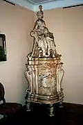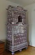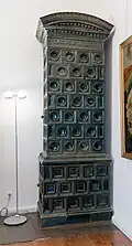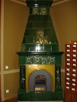El "Kachelofen" alemán es un calentador doméstico relativamente grande rodeado de baldosas de cerámica, que existe durante al menos cinco siglos. Durante el período renacentista en Alemania, los constructores de estas estufas formaban parte de un oficio diferente y se llamaban Hafnermeister .[3] : 98