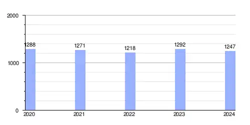 Hasta 2024 la población era de 1247 habitantes,[2] con una densidad de población de 9,32 hab/km².[2]