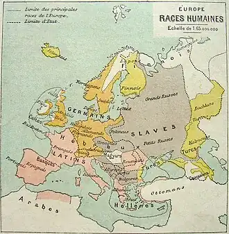 | Francia | Franceses | ~77,7% | Occitanos 9%, bretones 6%, alsacianos (alemanes) 2%, corsos 1,3%, vascos 0,4%, flamencos 0,3%, catalanes 0,2%, normandos 0,15%, arpitanos 0,1%. | Otros europeos 10% (italianos 4%, portugueses 1.8%, españoles 1.5%, polacos 1.5%, judíos 0.9%, rumanos 0.4%), árabes y norteafricanos 9%, turcos 1.2%, africanos subsaharianos 2%, otros 0.5% (indochinos, otros asiáticos, latinoamericanos).[9] |