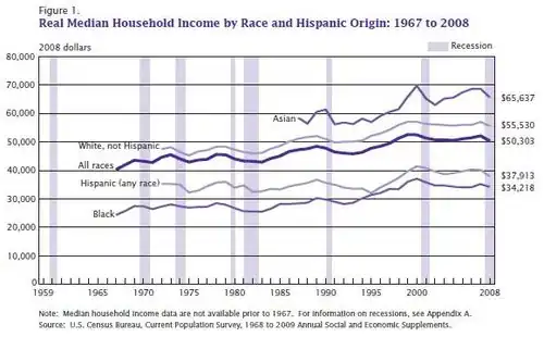 - ↑ a b c d «B03002. HISPANIC OR LATINO ORIGIN BY RACE - Universe: TOTAL POPULATION [by region]». 2008 American Community Survey 1-Year Estimates (en inglés). United States Census Bureau. Archivado desde el original el 6 de junio de 2011. Consultado el 1 de marzo de 2010.