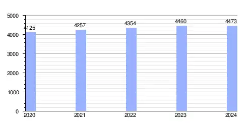 Hasta 2024 la población era de 4473 habitantes,[2] con una densidad de población de 83,96 hab/km².[2]