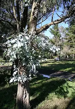 Corteza y follaje juvenil de Eucalyptus nova-anglica. | ||