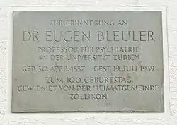 Lugar de nacimiento de Bleuler en Seestrasse 123 de Zollikon y placa en la casa natal.