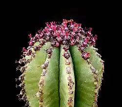 Es una planta suculenta con espinas en el tallo que alcanza hasta un metro de altura.