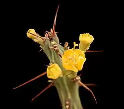 Es un planta perenne con tallo erecto y ramas laterales que alcanza los 30 cm de altura y tallos espinosos.