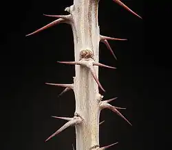 Es un arbusto perenne con tallo carnoso con espinos.[2]