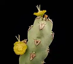 Es una planta suculenta, débilmente espinulosas, arbusto enano, ramificado desde la base, formando grandes grupos ramificados densamente, de ± 15 cm de alto, las ramas o subcilíndricas subcuadrangulares, de ± 8.10 mm de diámetro, disminuyendo en como en una base del tallo.[1]
