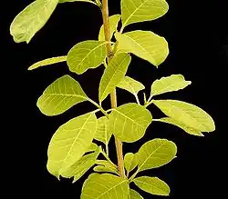 Es un arbusto leñoso caducifolio que alcanza los 3 m de altura, erecto o trepador, a veces, con hojas elípticas a 4,5 x2, 5 cm.[2]