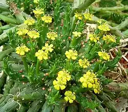 Es una planta suculenta herbácea, trepadora, glabrescente; las ramas ascendentes, pecioladas oblongas u obovadas, obtusas, con dientes gruesos, cuneadas en la base, glabras, estípulas ovadas, más cortas que el pecíolo; la inflorescencia racemosa en pedúnculos, caídas. Flores de color amarillo anaranjado, en un racimo secundario, terminal.[3]