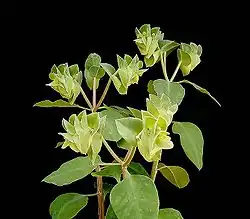 Es una planta suculenta arbustiva con las inflorescencias en ciatios.
