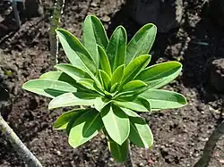 Alcanza una altura de 1,5 m y 1 m de extensión, con hojas lanceoladas de color verde oscuro y flores amarillas. La población total cuenta con menos de 50 individuos maduros en el medio silvestre.