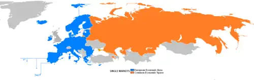 El eurasianismo ruso correspondía inicialmente más o menos a la superficie terrestre de la Rusia Imperial en 1914, incluyendo partes de Europa Oriental.[24] Uno de los principales intereses geopolíticos de Rusia reside en una integración cada vez más estrecha con aquellos países que considera parte de "Eurasia".[25] Este concepto se integra además con la escatología comunista por el autor Aleksandr Duguin como el principio rector de la "autosuficiencia de un gran espacio" durante la expansión.[26]