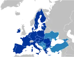 Actualmente, el término Europa puede ser usado tanto de manera amplia, para designar a la península más occidental de Eurasia, como de un modo más restringido; los Estados miembros de la Unión Europea. También se utiliza para aludir a una serie de naciones que comparten una identidad cultural común a la cual se califica de «europea». En este sentido es como lo utiliza el Consejo de Europa de cuyos 49 países miembros solo 27 pertenecen a la Unión Europea y la pertenencia de Turquía, país que mayoritariamente se sitúa geográficamente en Asia.[11] Por otro lado, los habitantes de algunas islas europeas; especialmente Irlanda o el Reino Unido, pero también Escandinavia, se refieren a la Europa continental como «el Continente».[12]