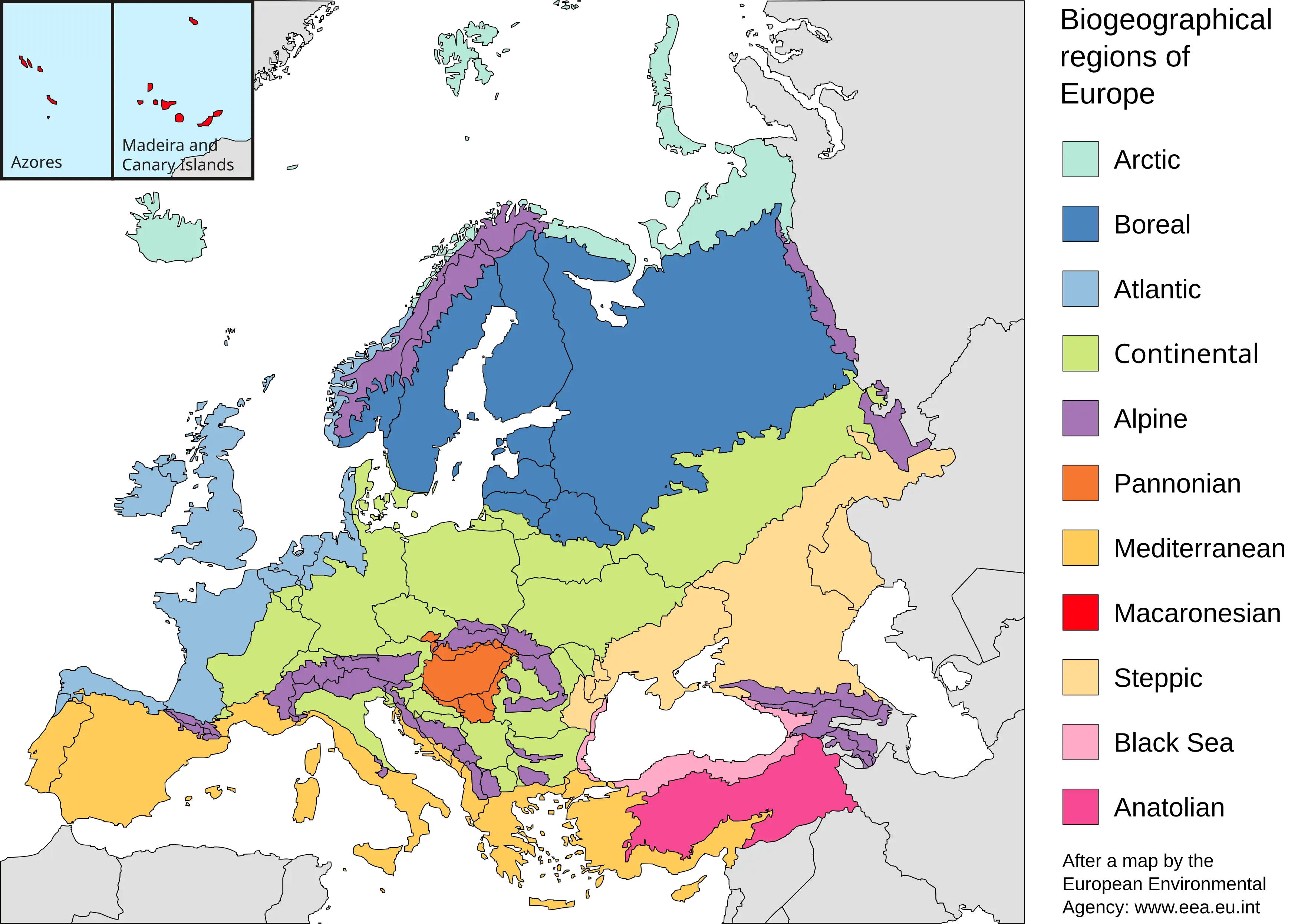 Europa es el único continente sin desiertos áridos tropicales. Los bosques, que cubrían prácticamente toda Europa, han cedido bastante terreno producto de la actividad humana. En la actualidad, los países con mayor cantidad de hectáreas de bosques son Rusia, Francia, Ucrania, España y Suecia (que son también, además de la euroasiática Turquía, los más extensos territorialmente). Los principales ríos que por su navegabilidad tienen mayor transcendencia económica son el Volga, el Danubio, el Rin y el Loira, entre otros, siendo además algunos de los más extensos de Europa.