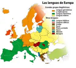 Según datos de Ethnologue[46] las cinco lenguas maternas más habladas en Europa son el ruso, el alemán, el francés, el inglés y el italiano. Sin embargo, por el número total de hablantes (lengua materna más segunda lengua), las cinco lenguas más habladas en Europa son el inglés, el francés, el ruso, el alemán y el español. Asimismo, las cinco lenguas europeas más habladas en el mundo (lengua materna más segunda lengua) son el inglés, el español, el francés, el ruso y el portugués.