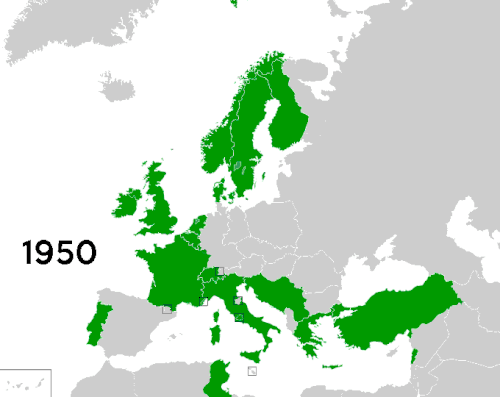 La Unión Europea de Radiodifusión fue fundada el 12 de febrero de 1950 en una reunión celebrada en Torquay, Reino Unido. A ella asistieron veintitrés organizaciones de radiodifusión que procedían de Europa Occidental, Yugoslavia, Turquía y los estados norteafricanos de Egipto, Líbano y Túnez. La nueva asociación pretendía mejorar el servicio de radio y televisión mediante la colaboración, la asistencia técnica, el intercambio de contenidos y la defensa conjunta de sus intereses. Su contraparte fue la Organización Internacional de Radio y Televisión, vigente en Europa Oriental y que existió desde 1946 hasta 1993, cuando fue absorbida por la Unión Europea de Radiodifusión.