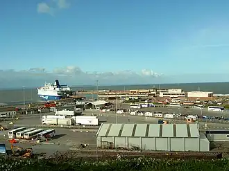 El puerto recibe barcos que importan nuevos autos al país. Los almacenes de los importadores pueden ser vistos en el pueblo del puerto de Rosslare.