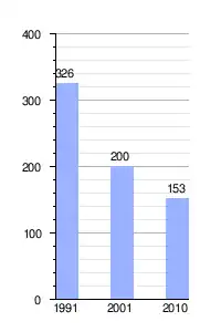 | Gráfica de evolución demográfica de Eustolia entre 1991 y 2010 |
