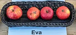 La manzana 'Eva', es una manzana de mesa de postre parcialmente roja.[3]