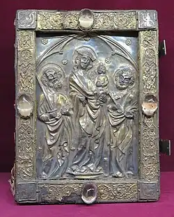 El evangeliario es el libro en el que se leen los evangelios durante la celebración de la eucaristía y, por lo tanto, uno de los objetos litúrgicos principales empleados en la misa. Por lo general, está encuadernado con cubiertas ricamente decoradas, muchas veces con metales preciosos, incluso joyas, o ricas telas con bordados. En el siglo VI, nacen los leccionarios al realizarse libros para uso litúrgico con los textos de lecturas para cada día. Se incluían en ellos los textos del Antiguo y del Nuevo Testamento, pero las lecturas del Evangelio se colocaba aparte en libros llamados Evangeliarios. Hacia el siglo XI, los leccionarios comenzaron a desaparecer, pues se publicaron libros que contenían toda la misa, incluidas las lecturas.