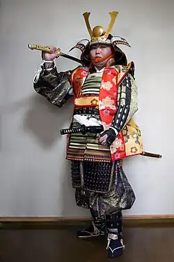 Respecto a los hombres cabe destacar la presencia de samuráis, guerreros del antiguo Japón. Este periodo fue muy pacífico lo que permitió que estos luchadores cuidaran más sus vestimentas. Esta prenda estaba compuesta por dos partes principales: un hakama y una parte superior que podía estar compuesta de un chaleco con los hombros muy marcados o una chaqueta larga denominada haori. Este conjunto era conocido como kamishimo. Utilizaban colores apagados con motivos sobrios. Los materiales eran distintos a pesar de las recomendaciones de renombrados maestros como Kato Kiyomasa de emplear algodón. A la vestimenta del samurái no podía faltar su famosa katana, arma exclusiva de la clase guerrera. Otra consideración importante fue el uso de prendas de papel o shii. Eran ligeras y muy resistentes, más que las de algodón. Se popularizaron debido a las restricciones del gobierno que no permitía a la clase media japonesa utilizar tejidos lujosos para su ropa.[1]