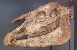 Aun así, el esqueleto de caballo más antiguo, Equus stenonis, fecha de finales del Terciario de Europa occidental. Los científicos creen que es una evolución de Plesippus. Equus stenonis evolucionó seguidamente en dos ramas, una de las cuales era más pesando que la otra. Equus scotti, una forma similar, fue común en América, donde algunos de ellos acontecieron gigantes. Estas especies americanas se extinguieron hace 11.000 años durante el evento de extinción del Cuaternario tardío.