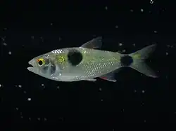 ![]() Tetra diente de gamo (Exodon paradoxus) en el acuario del Zoológico de Cali, Colombia | ||