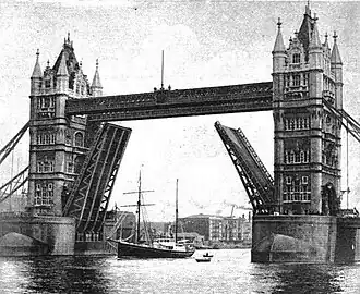 El Quest, barco de la expedición pasando bajo el puente de la Torre de Londres antes de iniciar su viaje a la Antártida.