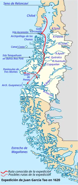 La expedición de Juan García Tao fue enviada en 1620 por el gobernador de Chile Lope de Ulloa y Lemos a reconocer las islas al sur del país y encontrar la ciudad de los Césares. Regresó el mismo año, sin lograr su cometido.