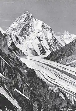 En la expedición italiana al K2 de 1954, Achille Compagnoni y Lino Lacedelli se convirtieron en los primeros alpinistas en alcanzar la cima del K2, la segunda montaña más alta del mundo, una cima más difícil de escalar que la más alta, el Monte Everest, que una expedición británica había coronado el año anterior. Ardito Desio dirigió la expedición y se alcanzó la cumbre el 31 de julio de 1954.