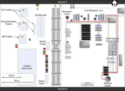 En 1995 se había creado en la instalación un informe de análisis de emplazamiento temporal[22]que establecía una disposición aceptable de los remolques y otras estructuras temporales con respecto a las instalaciones de proceso peligrosas cercanas.[23] El informe se revalidó en 2002, basándose aún en las normas de Amoco aunque habían transcurrido más de tres años desde la fusión BP-Amoco. A su vez, el Facility Siting Screening Workbook de Amoco se basaba en la Recommended Practice 752 del American Petroleum Institute[24] El siguiente análisis de emplazamiento debía realizarse en 2007 y, por tanto, cualquier cambio de emplazamiento antes de esa fecha tendría que someterse al proceso de gestión del cambio (MOC). A finales de 2004 se hicieron planes para alojar a los contratistas que iban a trabajar en la UCU en 2005 en nueve remolques individuales y un remolque de doble ancho inmediatamente al oeste de la unidad de proceso ISOM. El equipo que llevó a cabo la evaluación MOC para la colocación del remolque de doble ancho identificó que la estructura estaría a menos de 350 pies (110 m) de la planta ISOM, una distancia por debajo de la cual debía realizarse un análisis de riesgos específico conforme a las disposiciones del Libro de Trabajo de Amoco. Sin embargo, este equipo carecía de los conocimientos necesarios para completar la evaluación de riesgos. La introducción de los nueve remolques individuales de la imagen no se evaluó en un MOC. Además, contrariamente al procedimiento, las recomendaciones emitidas en el análisis del cambio que supuso la colocación del remolque de doble ancho seguían abiertas cuando se ocuparon los remolques en noviembre de 2004.