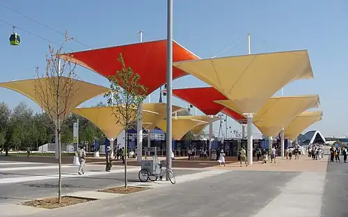 - ↑ «Concluye la urbanización de la plaza del recinto de la Expo».