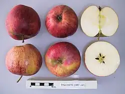 ![]() La variedad de manzana 'Exquisite' con secciones cruzadas. | ||