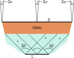mostrando que la extensión de la luz refractada en dS se conserva. El mismo resultado también es válido para el caso de una reflexión en una superficie dS, en cuyo caso nΣ = nS y θΣ =θS.