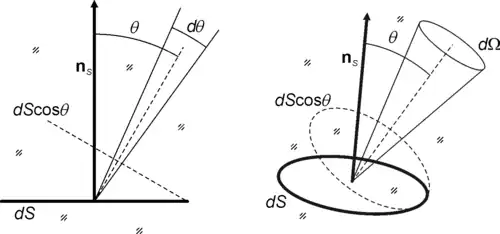 donde dΩS es el ángulo sólido definido por el área dΣ. Estas expresiones resultan en