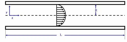 Primero tratamos el flujo, que a través de un canal de sección transversal circular fluye con un flujo parabólico: