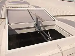 - Exutorio o aireador de lamas: Sistema especialmente diseñado para el control de humos y calor en caso de incendio, apto para la ventilación natural diaria así como elemento de iluminación natural.