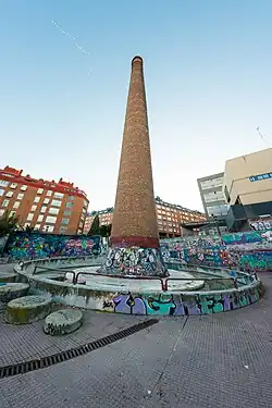 Parque del Gasómetro, ubicado donde se situaba la antigua fábrica de gas, de la que sólo perdura la entrada y una chimenea de ladrillo.
