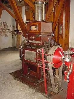 Los productos finales pasan al torno divisor de salvados para su clasificación. En la segunda planta hay un molino Daverio diagonal para el remolido de salvados.