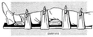 - Férula de Linston: una férula recta, a menudo de madera con una almohadilla para la fractura del fémur. Se adapta a un lado del cuerpo y al miembro inferior.
